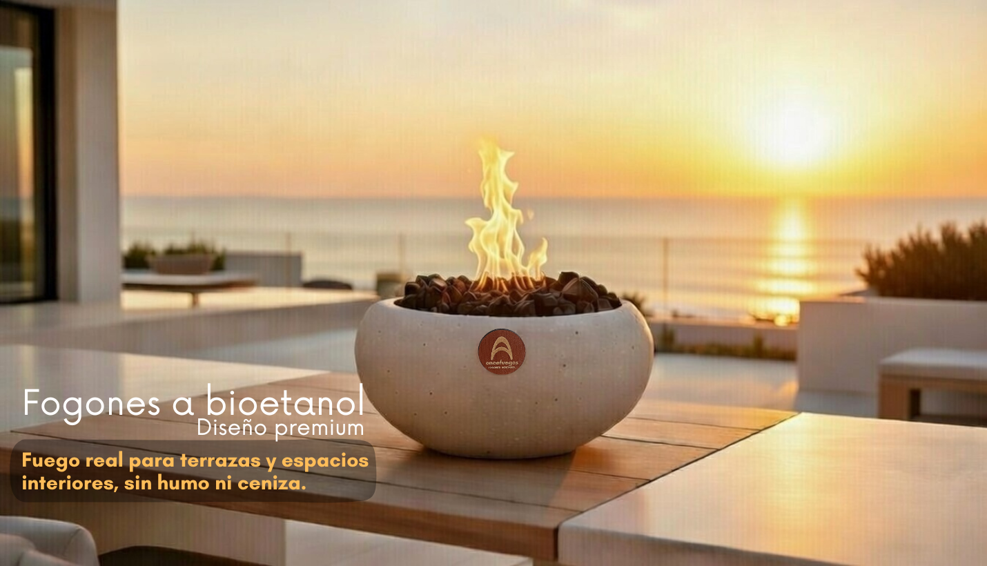 Disfruta un fogón a bioetanol: llama real, sin humo y sin residuos. Ideal para interior/exterior, encendido rápido y rendimiento que sorprende (hasta 6 horas por litro).
